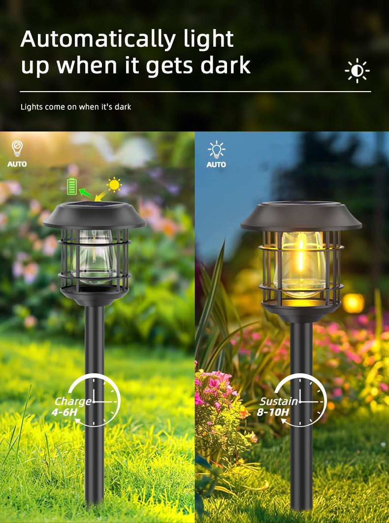 As luces solares de patio impermeables ao aire libre de Landsign están feitas de material impermeable, o que garante que se poida usar normalmente incluso en días de choiva. Sistema fotosensible intelixente, carga automática durante o día, acéndese automaticamente ao anoitecer. Con diferentes métodos de instalación, adecuados para diferentes escenas, podes escoller a vontade.
